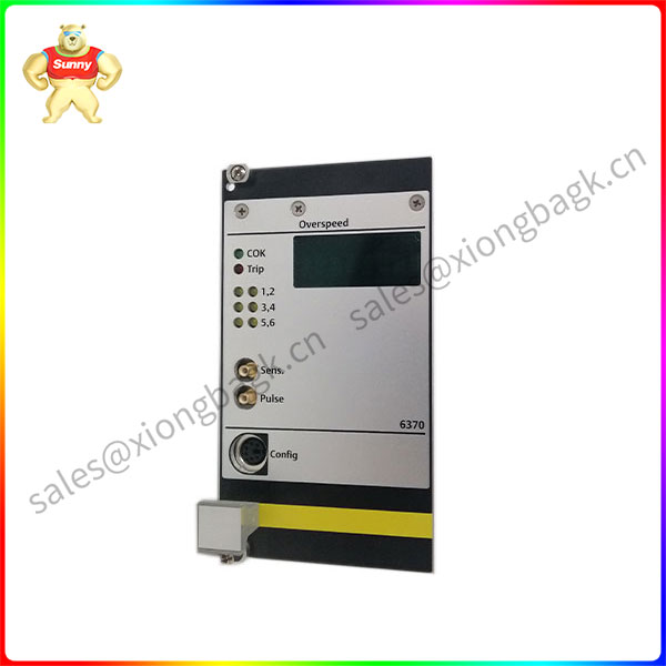 The A6370 monitor is part of the AMS 6300 SIS Overdrive protection system and is mounted with the A6371 in a 19-inch rack (84HP wide, 3RU high) system baseplate. An AMS 6300 SIS consists of three protection monitors (A6370) and a backplane (A6371).