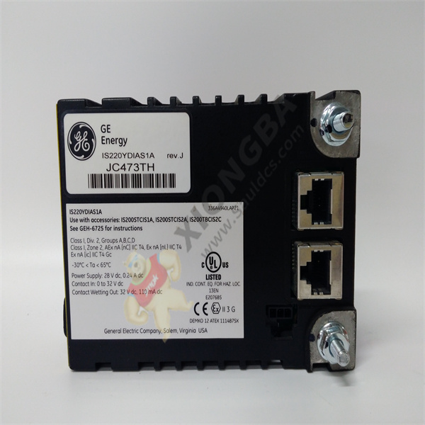 The IS220YDIAS1A is both UL listed and CE marked. It can be used in both hazardous and non-hazardous locations. Ratings for hazardous location use can be found within documents like GE’s GEH-6725. This I/O module is designed for use in ambient conditions between -35 and +65 degrees Celsius.